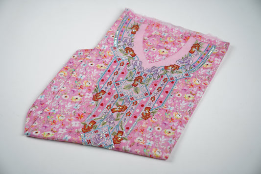 Bel Fleur d’Aurore | Pink Floral Fabric with Dawn-Inspired Embroidery