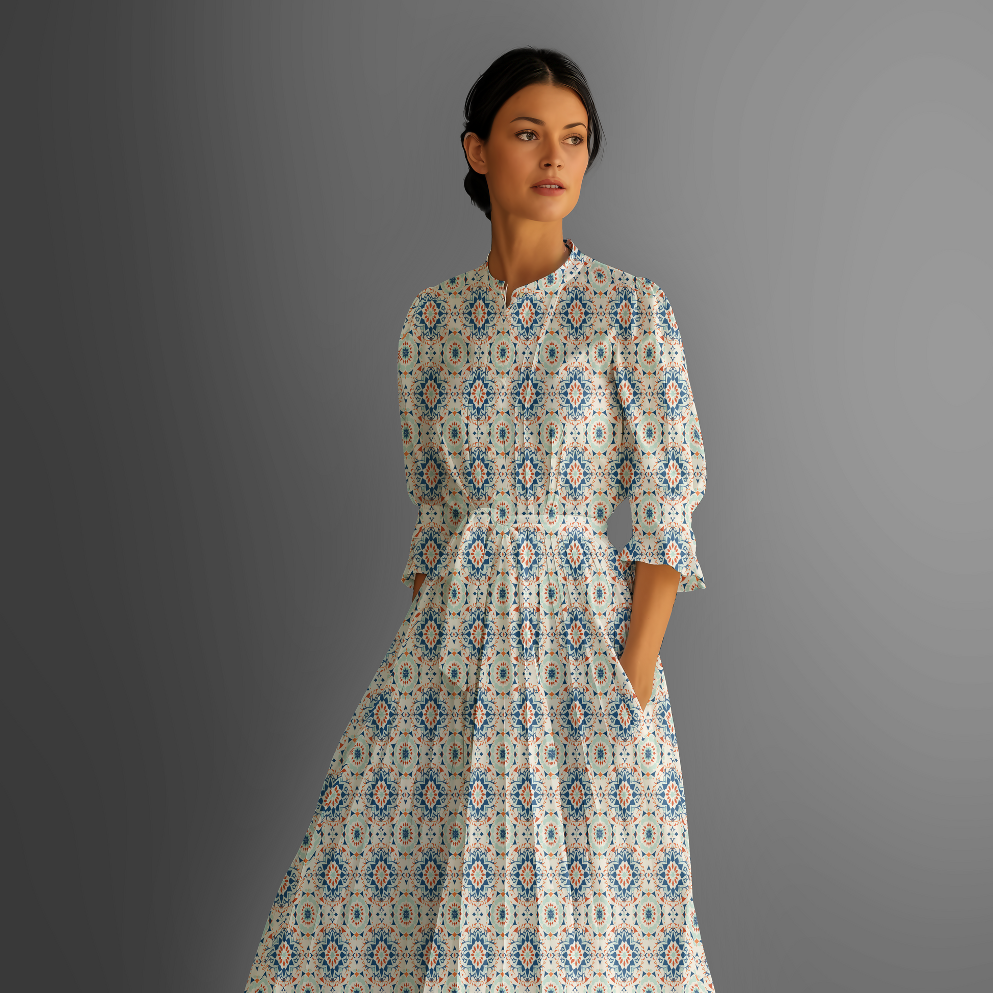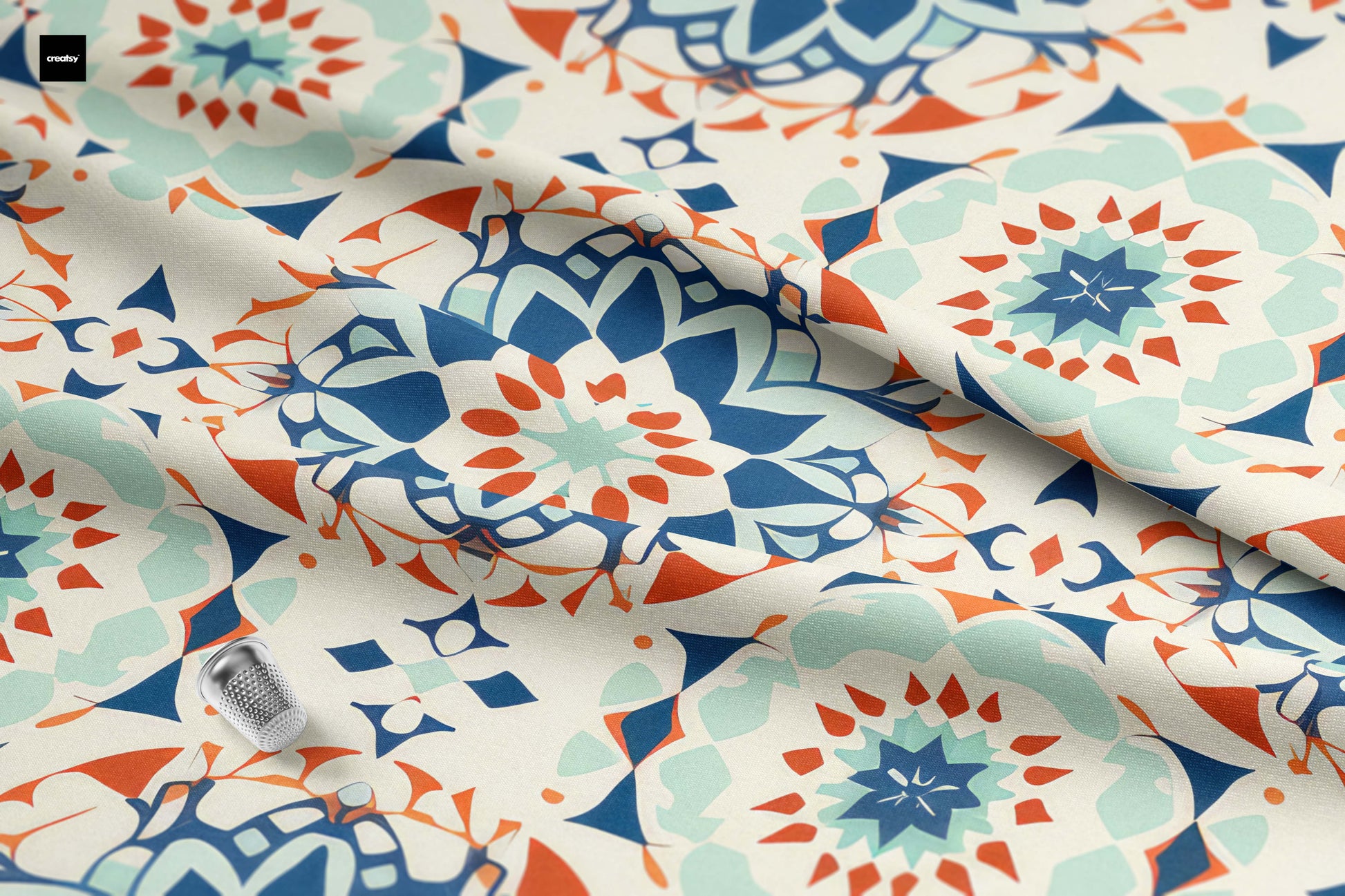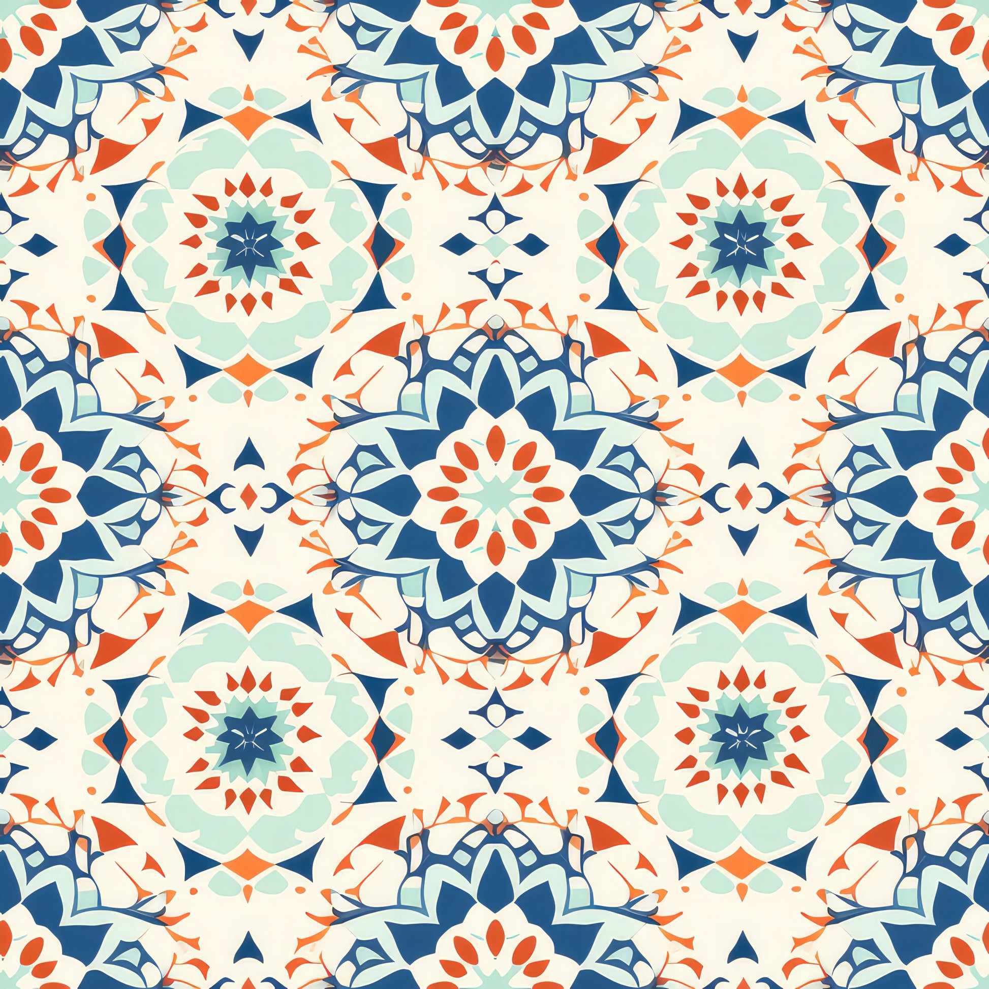 An intricate Andalusian-inspired pattern, where soft blue, terracotta, and ivory tones meet in a dance of heritage and grace.