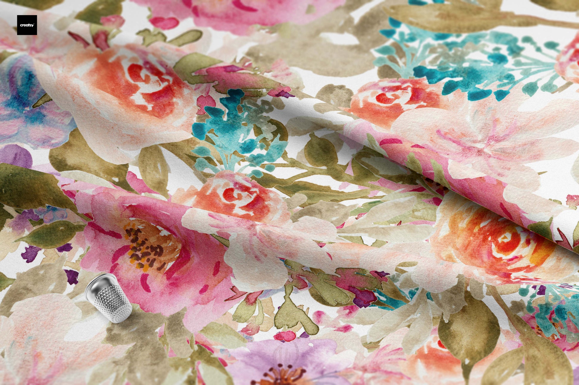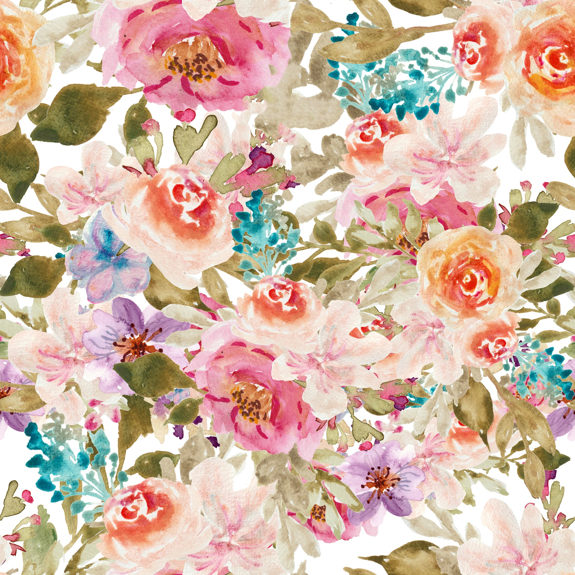 An explosion of vivid watercolor florals in coral, fuchsia, turquoise, and peach tones.