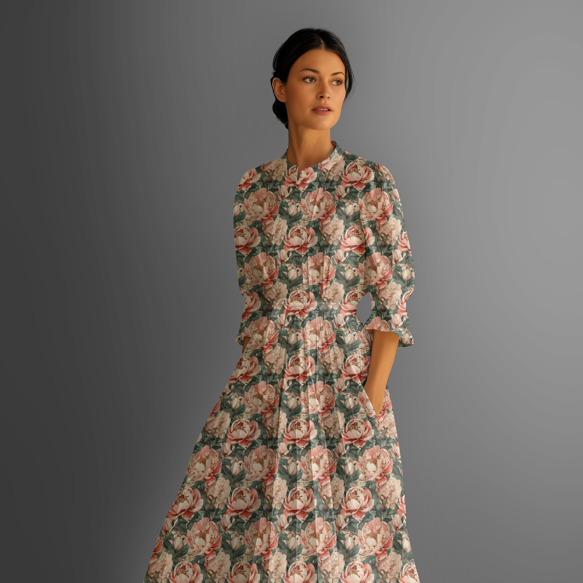 Made from luxurious natural cotton, the fabric exudes a tender lightness and subtle sheen, offering a delicate balance between classic beauty and modern minimalism.