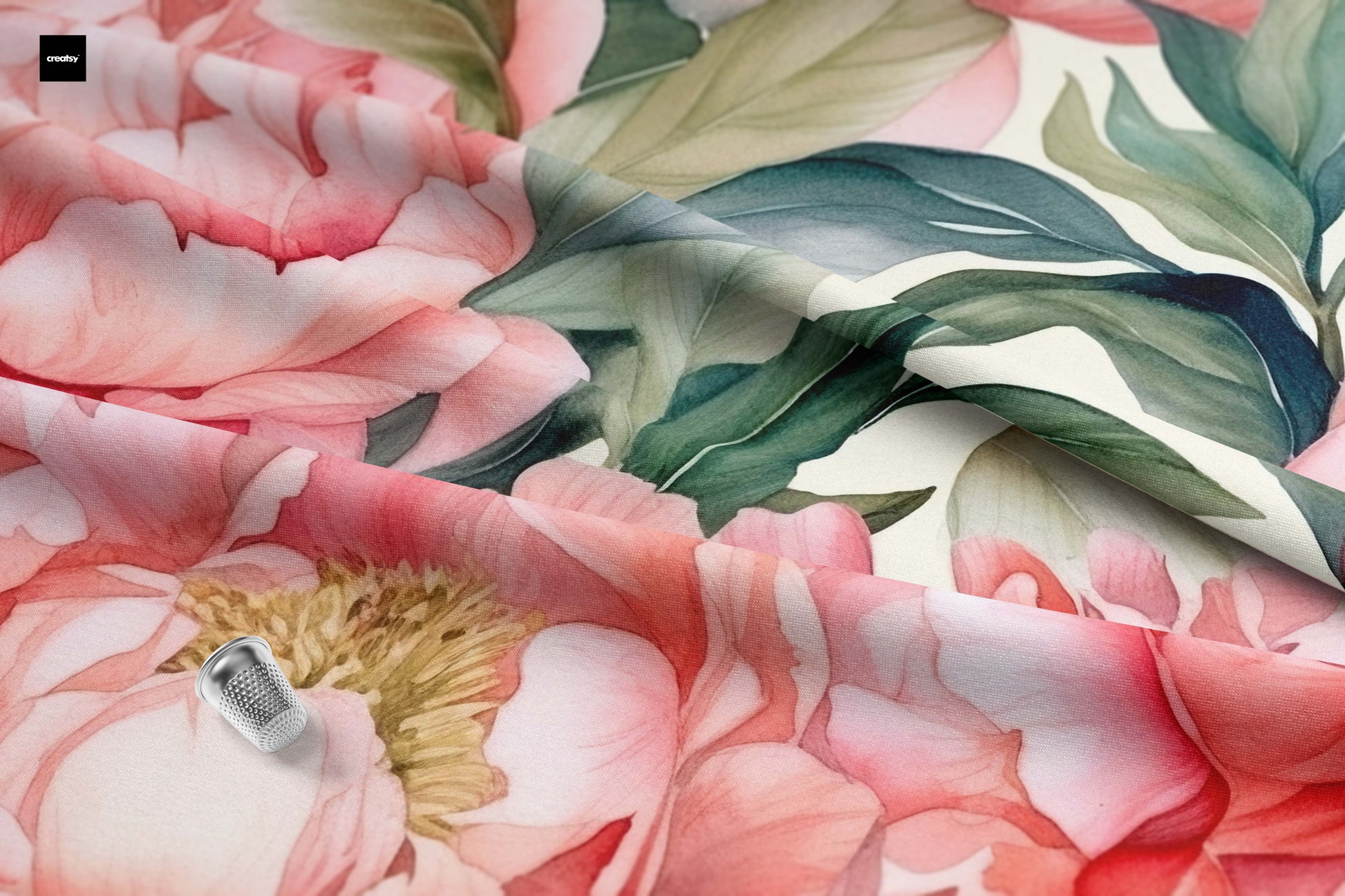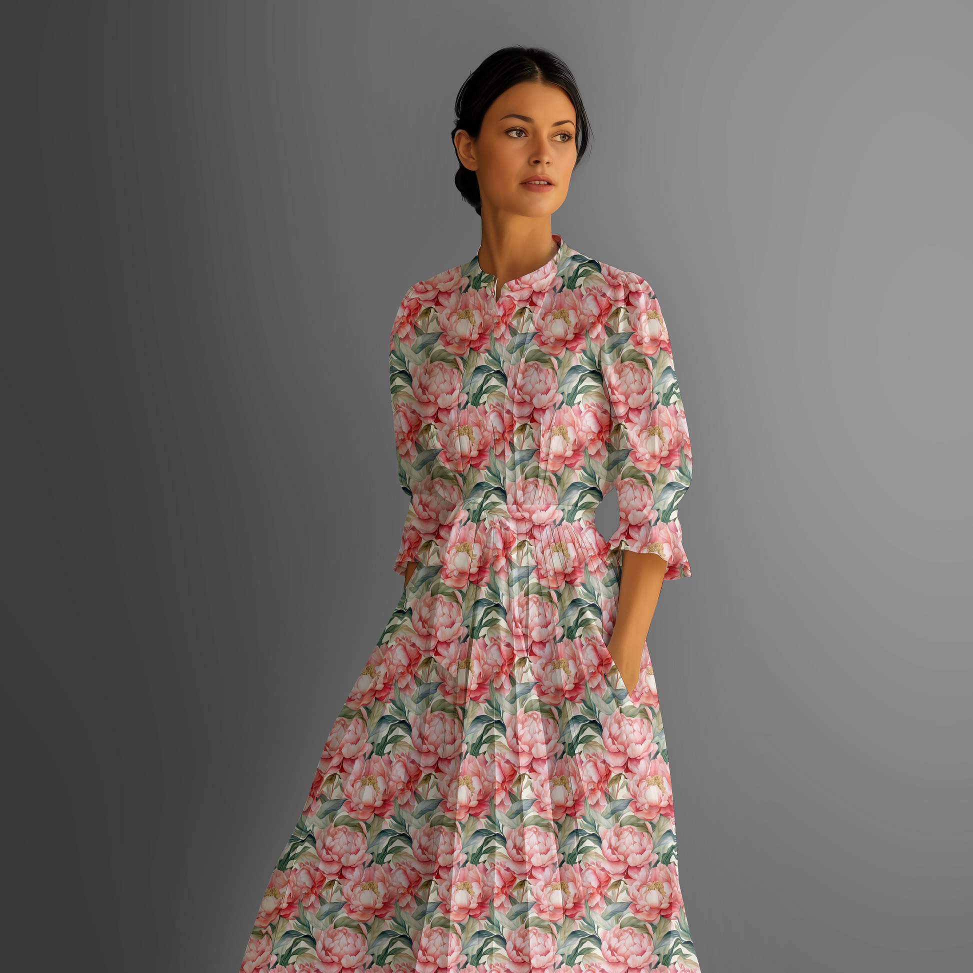 A captivating Yazhani-exclusive floral print, alive with vivid coral blossoms and lush green stems that evoke joy and sophistication.