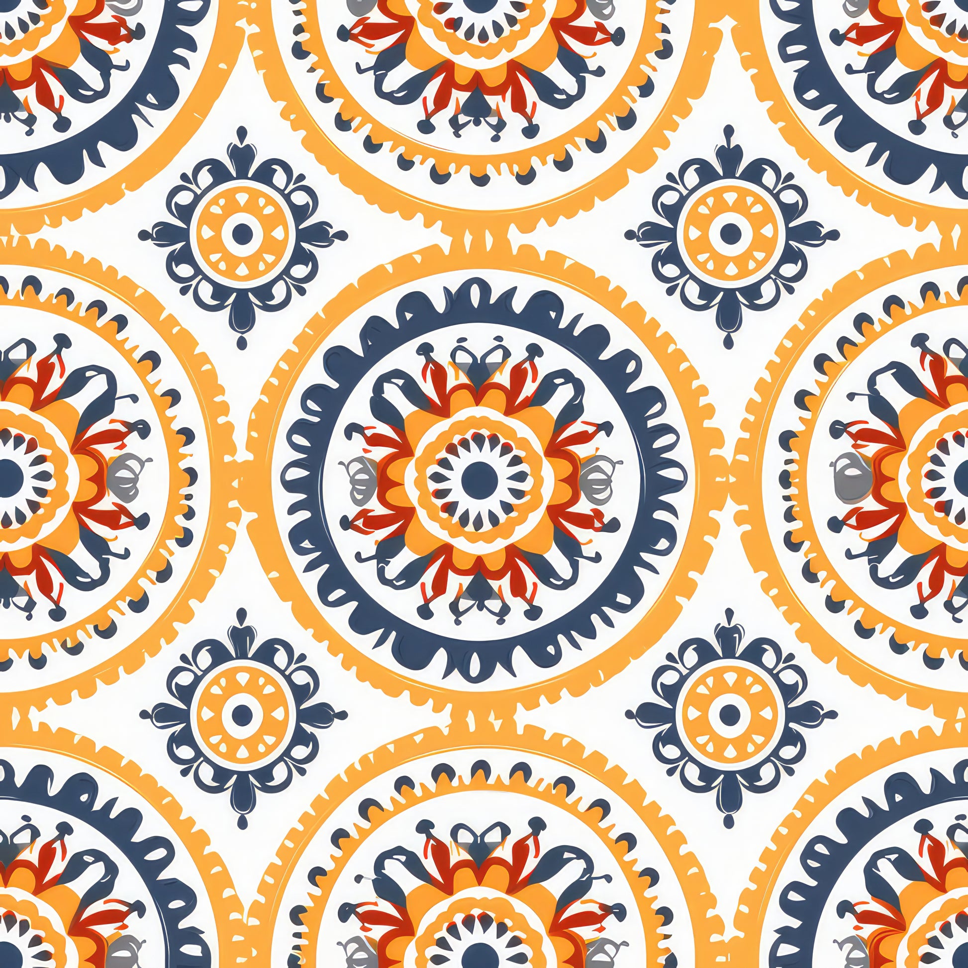 A timeless geometric pattern inspired by oriental architecture and gold medallions, blending shades of navy, amber, and beige in perfect symmetry.