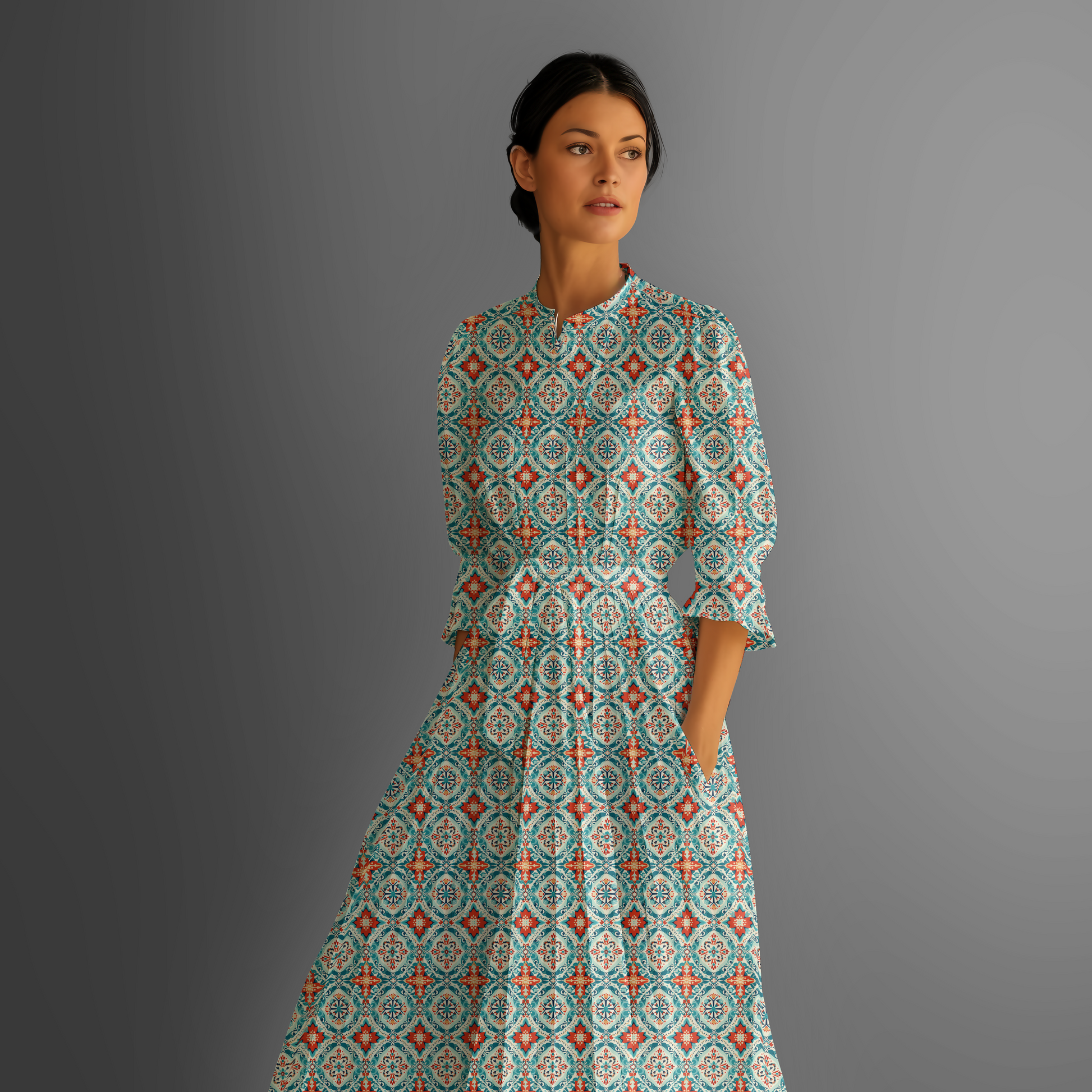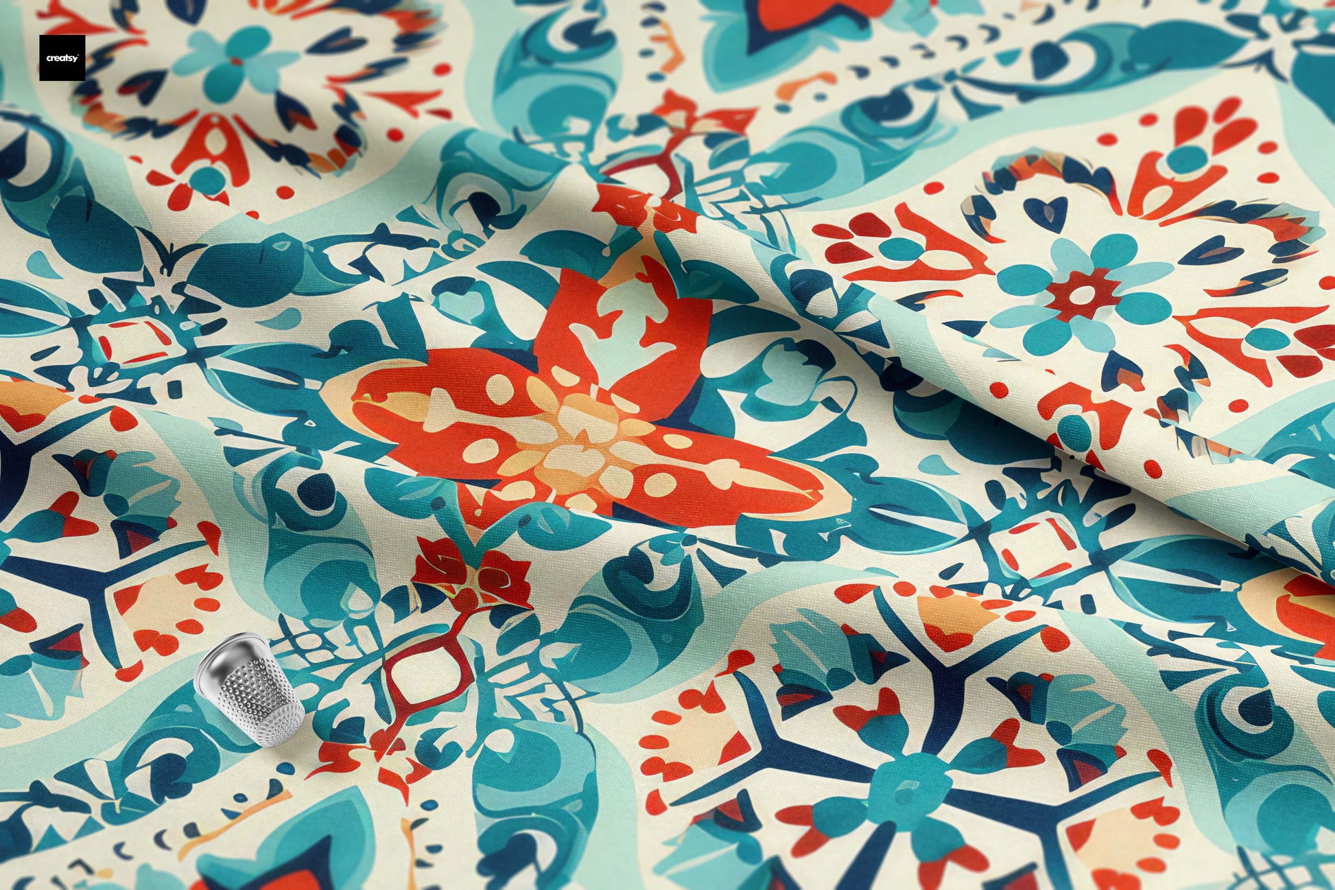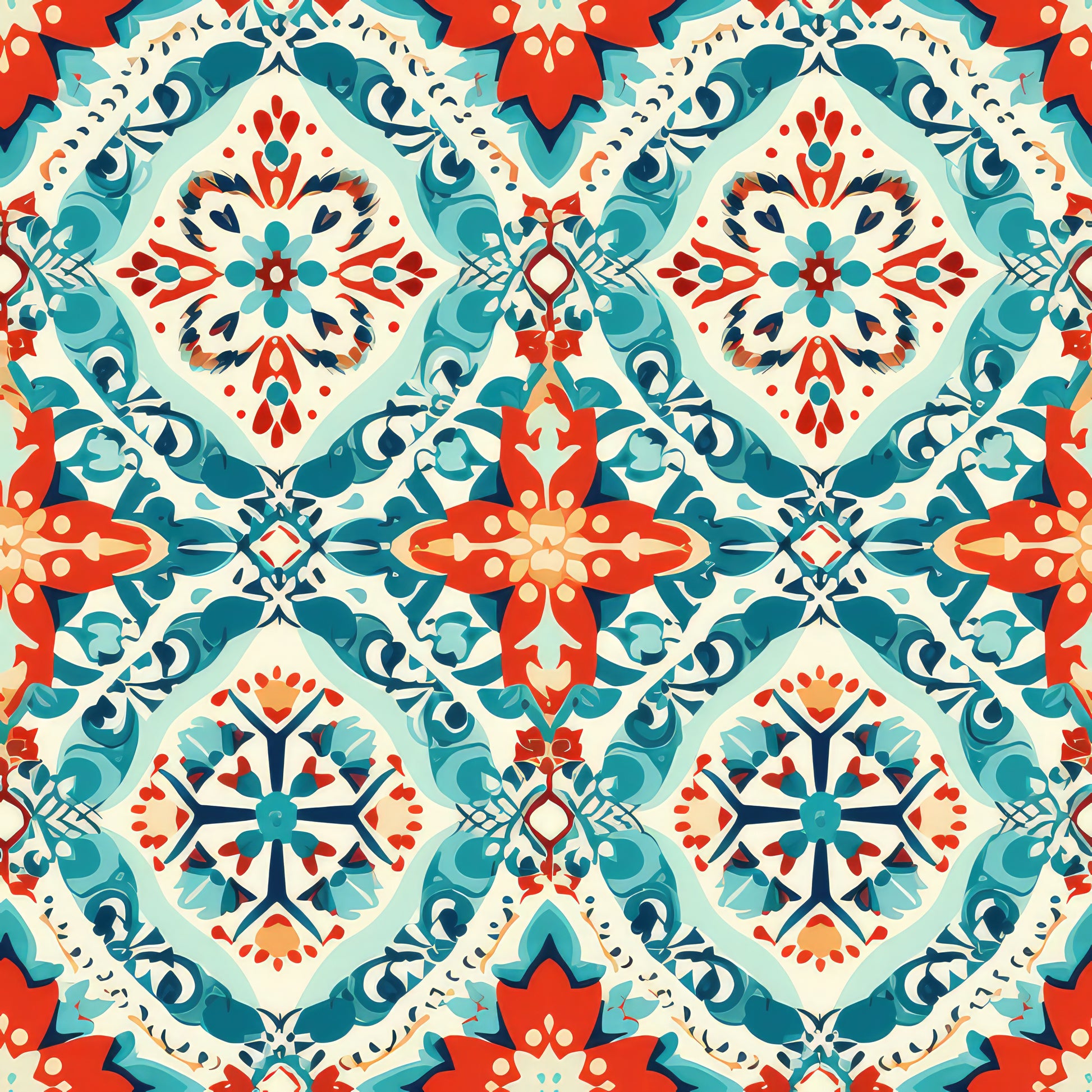 A vibrant ode to the Mediterranean spirit, filled with star-shaped motifs and floral accents in turquoise, coral, and gold.