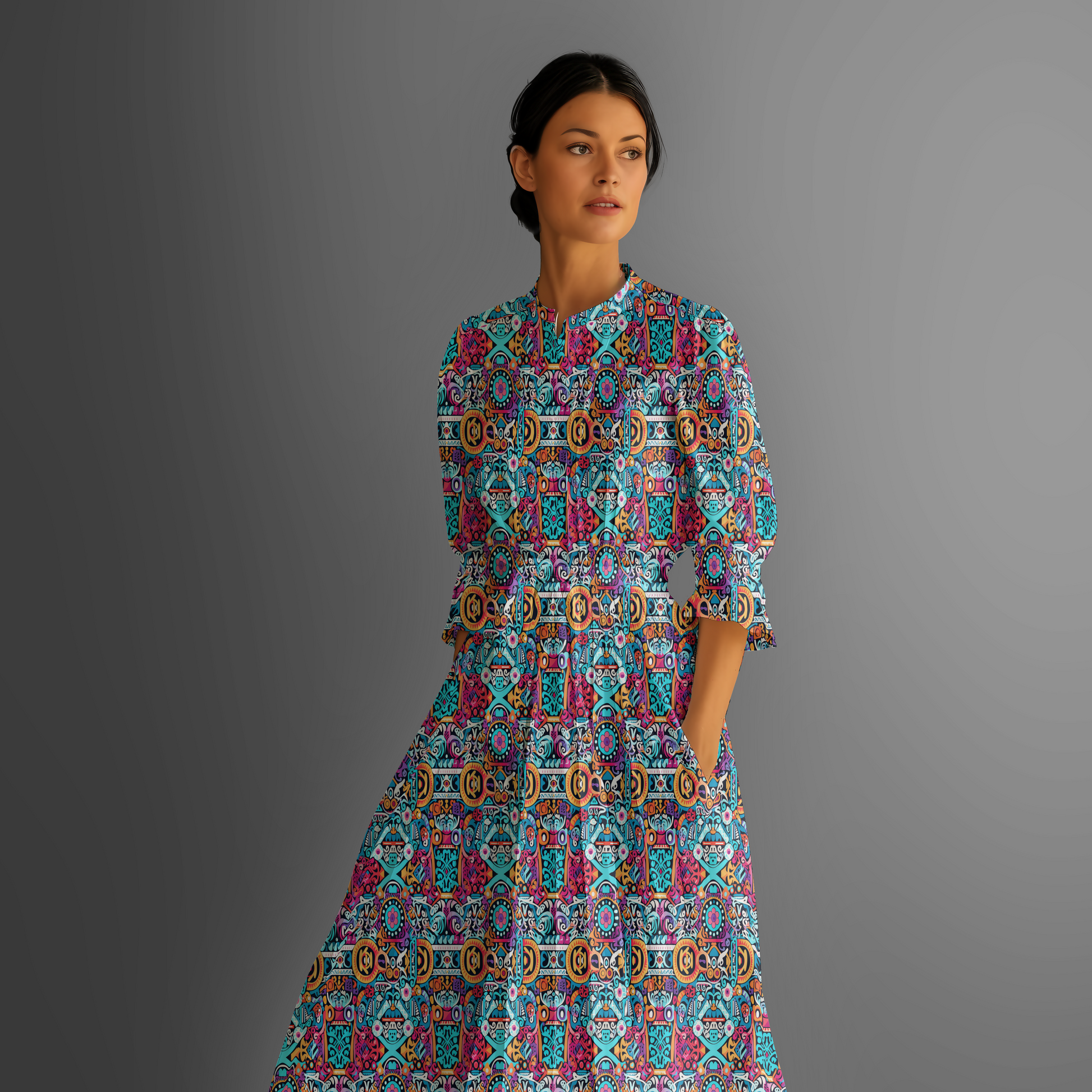 Woven from luxurious natural cotton, this exclusive Yazhani print captures free-spirited creativity with a statement look — designed for the woman who loves color, culture, and confidence.