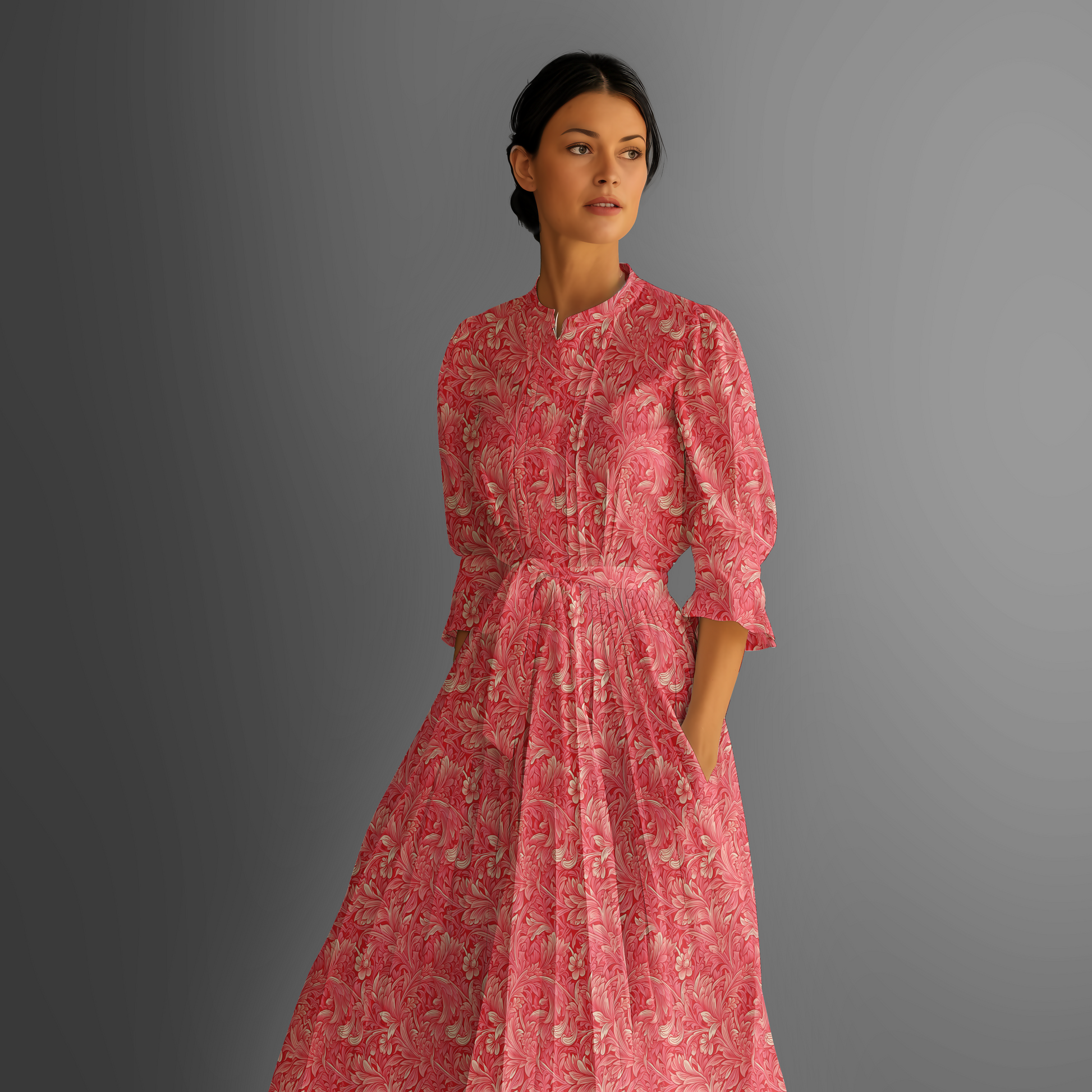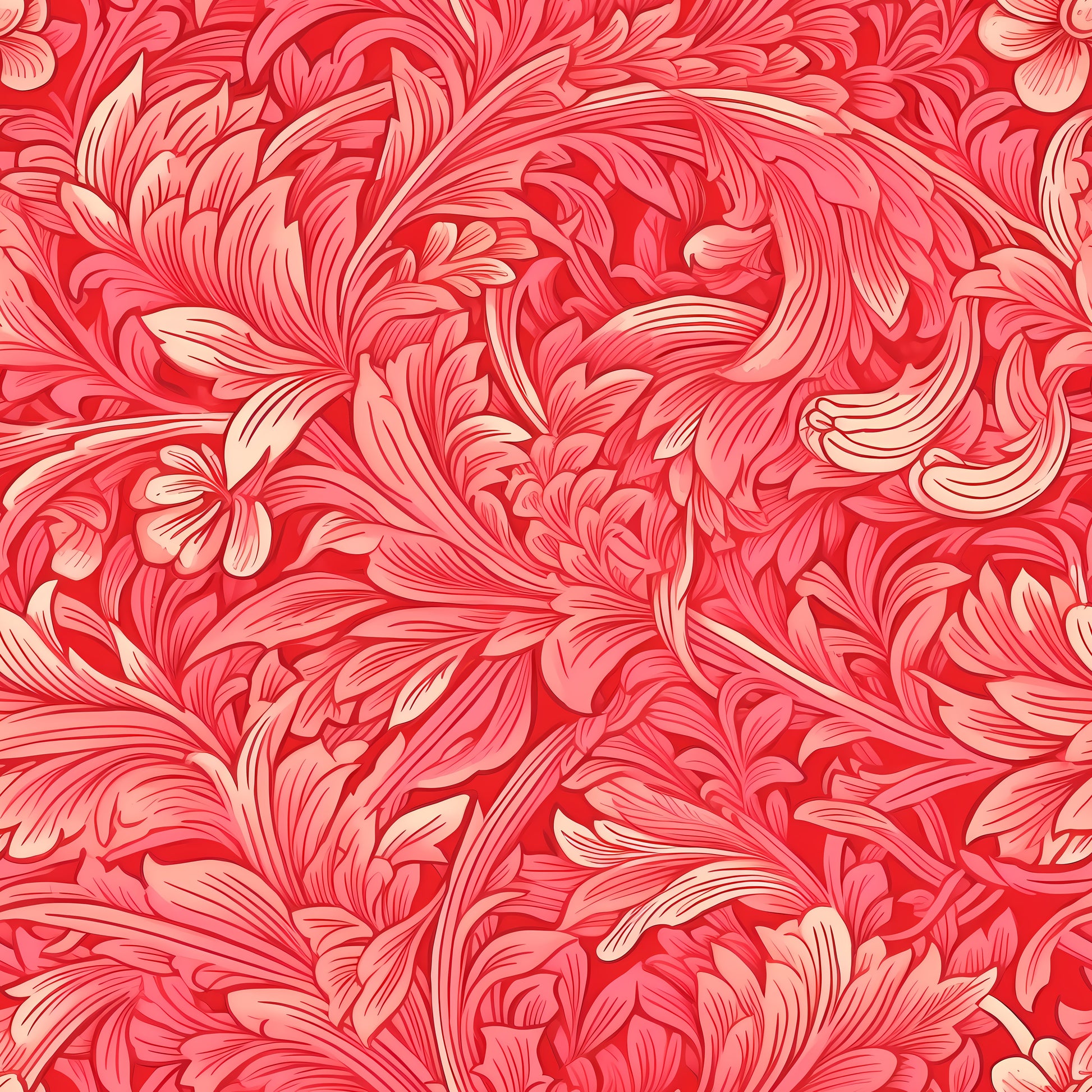 A bold celebration of crimson and coral leaves swirling over rose undertones, representing passion and vitality.