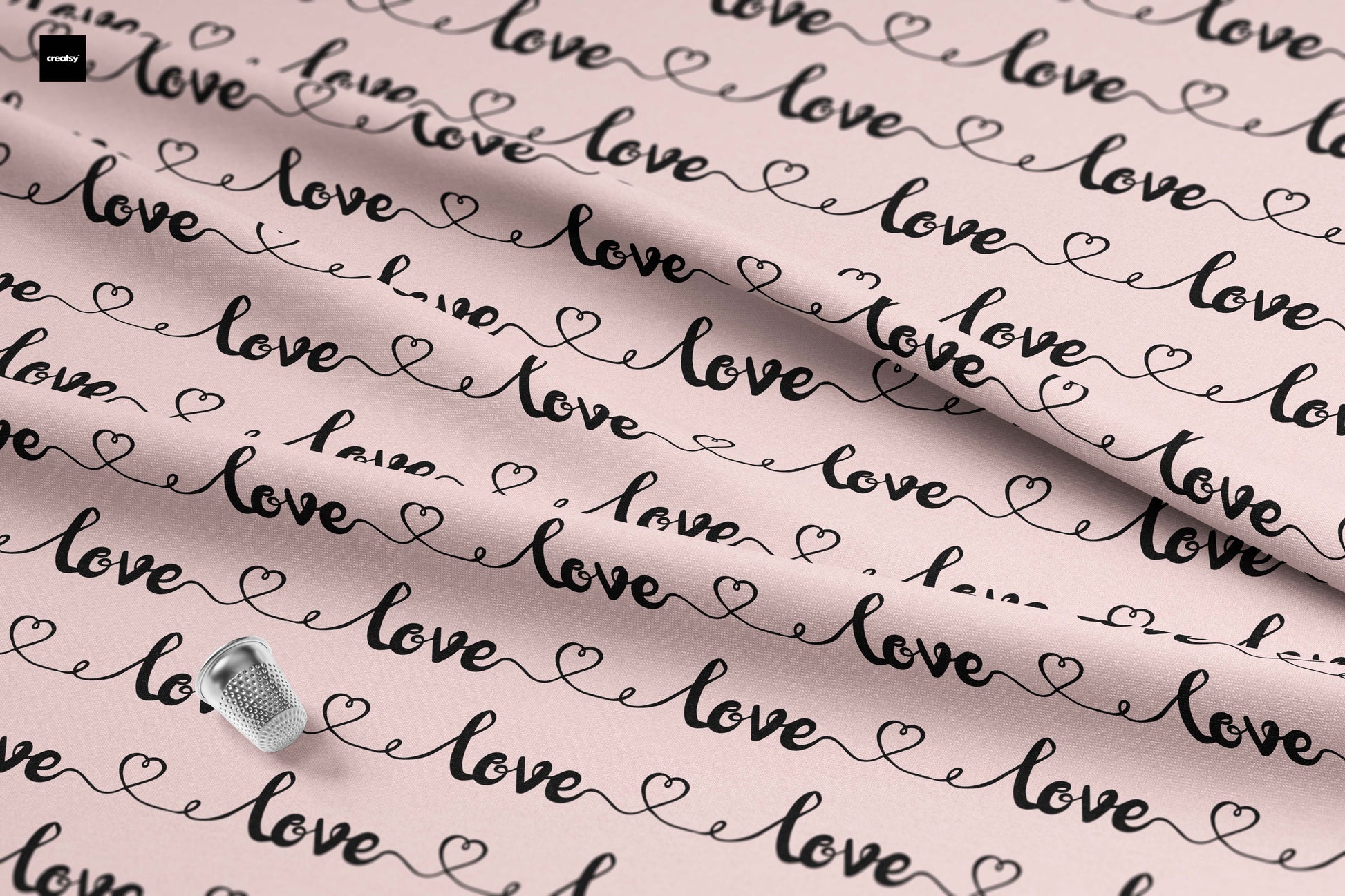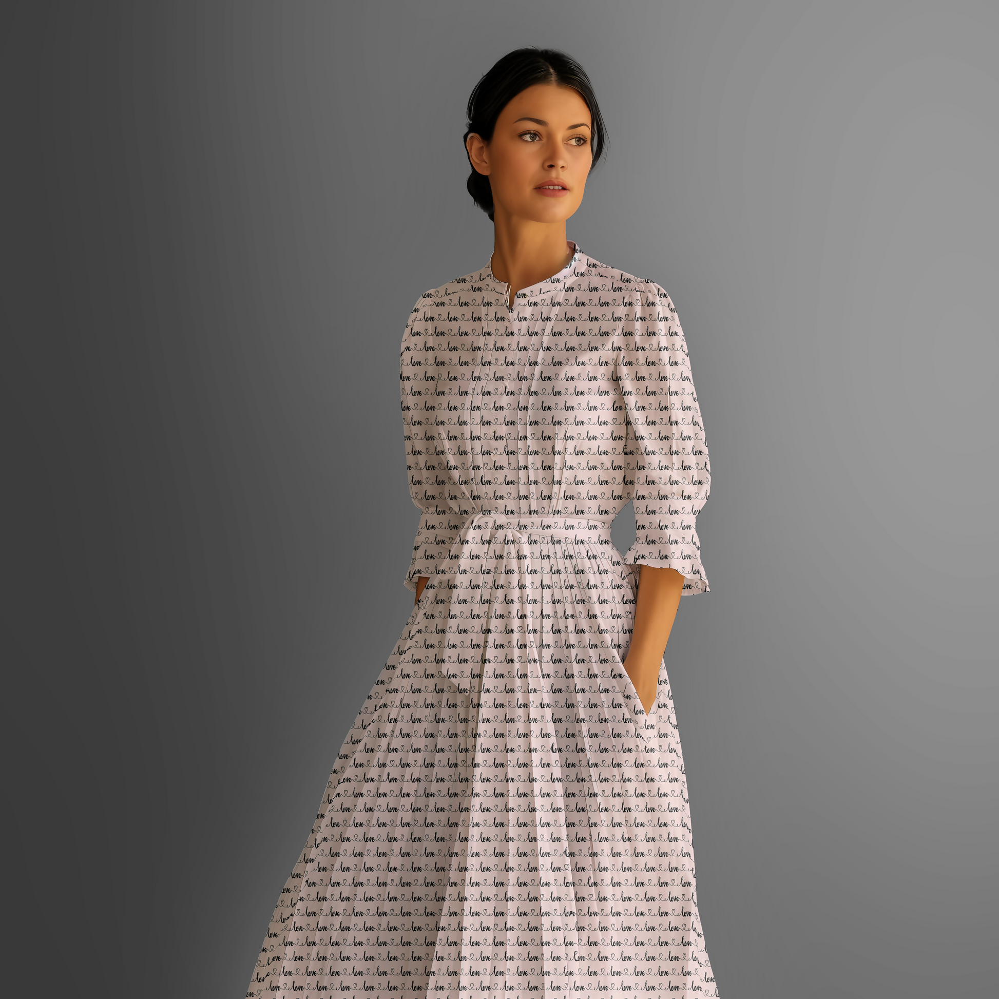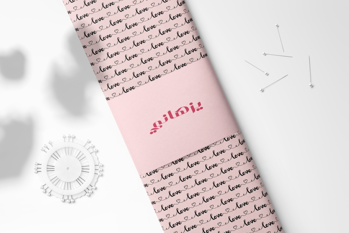 A minimalist Yazhani classic with handwritten “love” calligraphy repeated elegantly in black over a soft blush base.